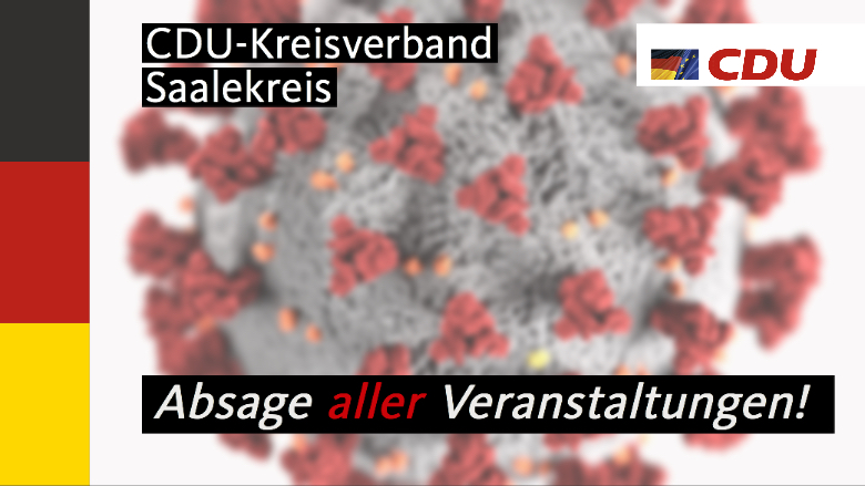 Aufgrund der aktuellen Situation werden durch den CDU-Kreisverband Saalekreis bis auf weiteres keinerlei Veranstaltungen anberaumt bzw. durchgeführt.