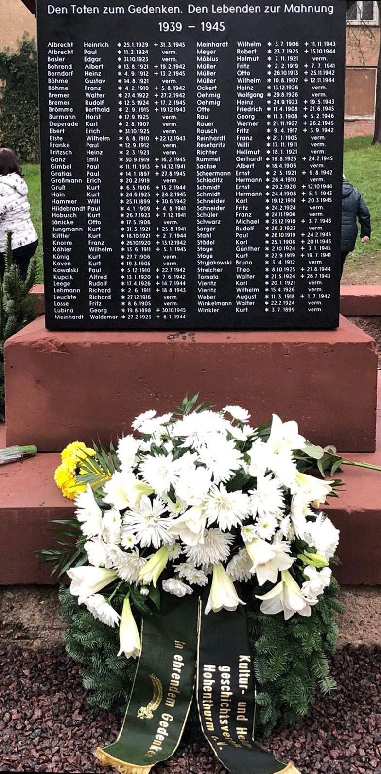 Wir gedenken der Soldaten, die in den Weltkriegen starben, der Menschen, die durch Kriegshandlungen oder danach in Gefangenschaft, als Vertriebene und Flüchtlinge ihr Leben verloren.