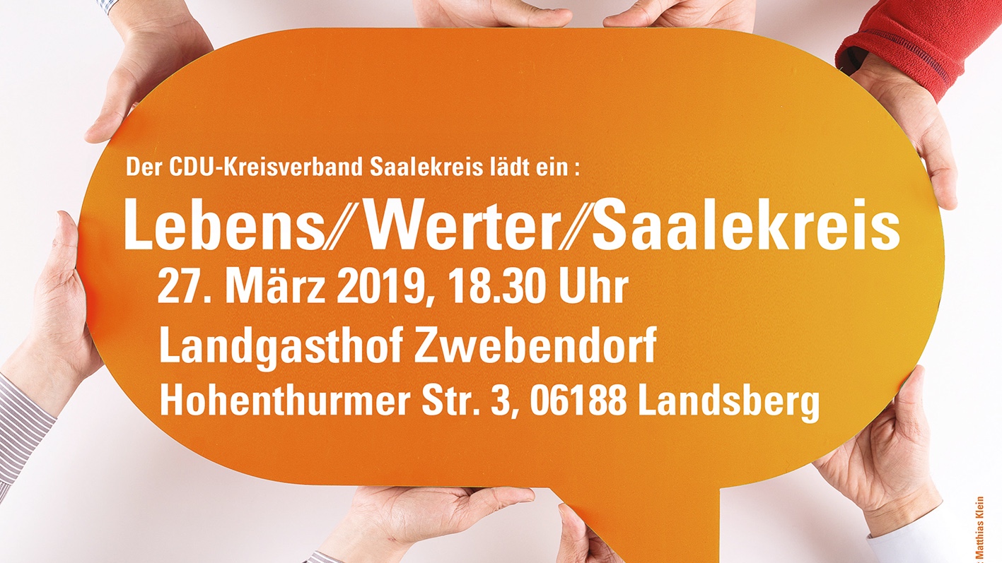 Zur nächsten Veranstaltung unserer offenen Diskussionreihe "Lebens//Werter//Saalekreis" möchten wir Sie am 27.03.2019 ab 18.30 Uhr in den Landgasthof in Zwebendorf (Stadt Landsberg) einladen.