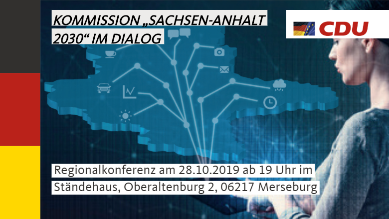 Zur Regionalkonferenz der Kommission "Sachsen-Anhalt 2030" am 28.10.2019 ab 19.00 Uhr im Ständehaus in Merseburg laden wir alle Mitglieder und Interessierten ganz herzlich ein.