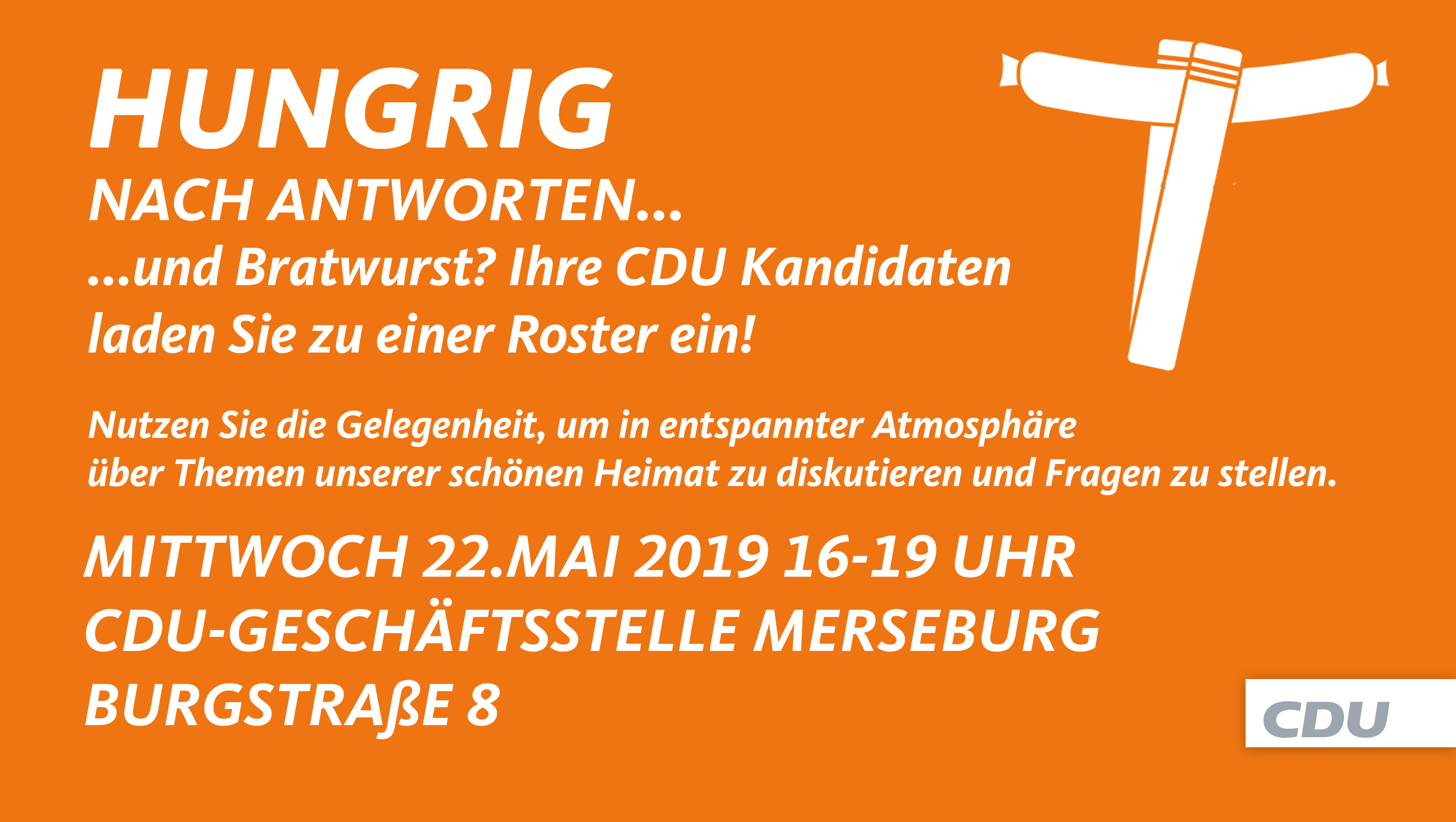 am Mittwoch, dem 22. Mai 2019, in der Zeit von 16:00 Uhr bis 19:00 Uhr, in der Burgstraße 8, 06217 Merseburg